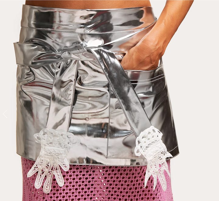 As someone who has a hard time wanting to visit my kitchen for more than a 10-minute bout - a fun new apron is sometimes the best medicine. As I recommitted to my cooking efforts in 2024, I have two I am debating between. It could be this cute utilitarian smock apron from Sur laTable or this far-from-practical intergalactic affair from Gohar’s World.