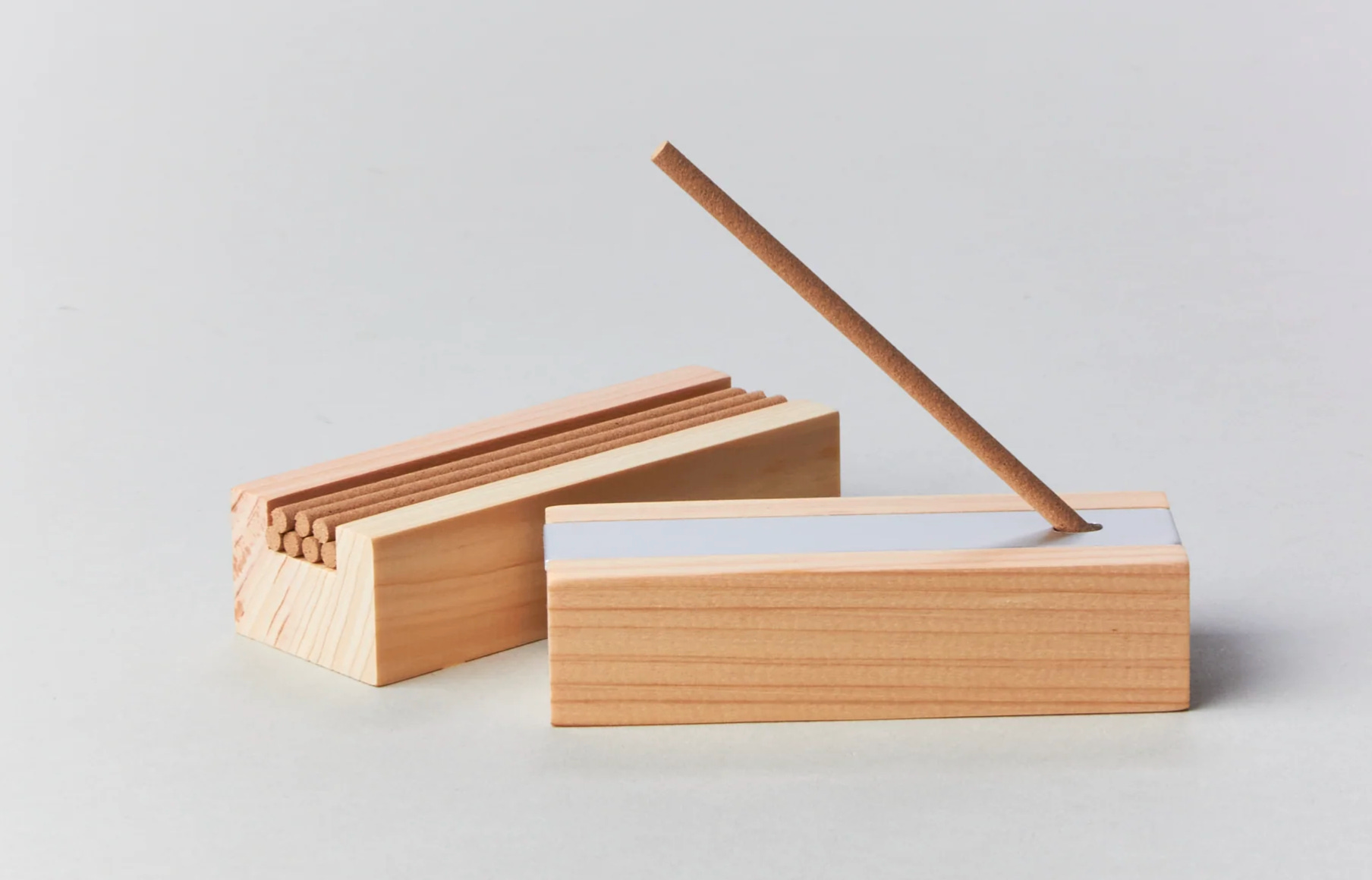 Handmade and sustainably produced, this Hinoki Forest Incense set includes eight incense sticks and an aluminum burner that fits atop the Hinoki block container. Compact and scent-full it’s the perfect purchase for those looking for a little serenity and appreciate thoughtful, space-saving design.
