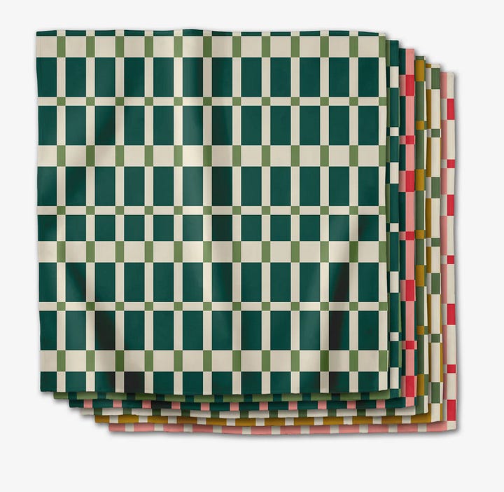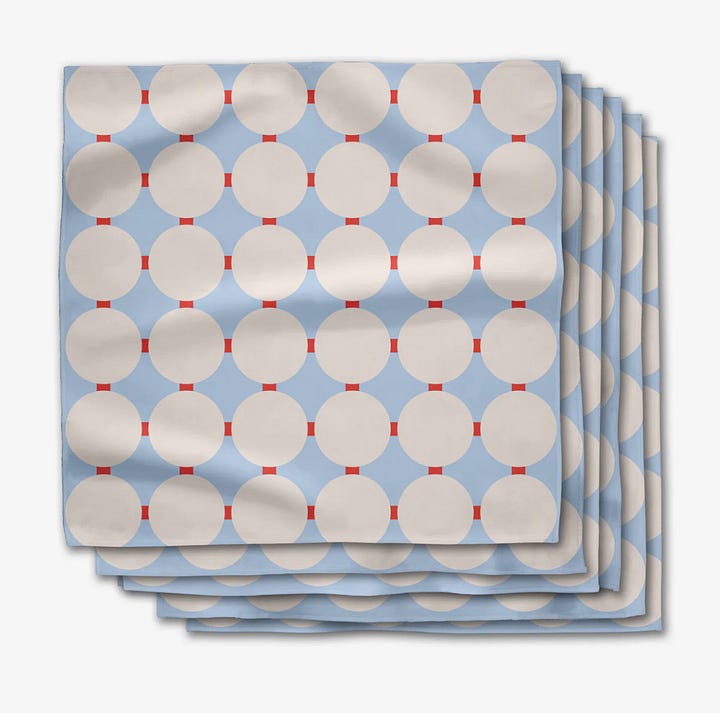 Oh I’m so here for your content! Dinner napkins?!?!?…an under appreciated necessity, says me! I love so many of these designs from Geometry but the napkins are too big! I’m not a restaurant and why do I need such big ones! Pet peeve… I wish it was easier to find small cloth dinner napkins - too much laundry otherwise. I have some from Crate and Barrel I bought years ago - nice and small, cloth cocktail napkins I guess, but much more practical than restaurant size ones…bc I like to use them for home use not just for guests. If you know of small cloth napkins…LET ME KNOW TOO!