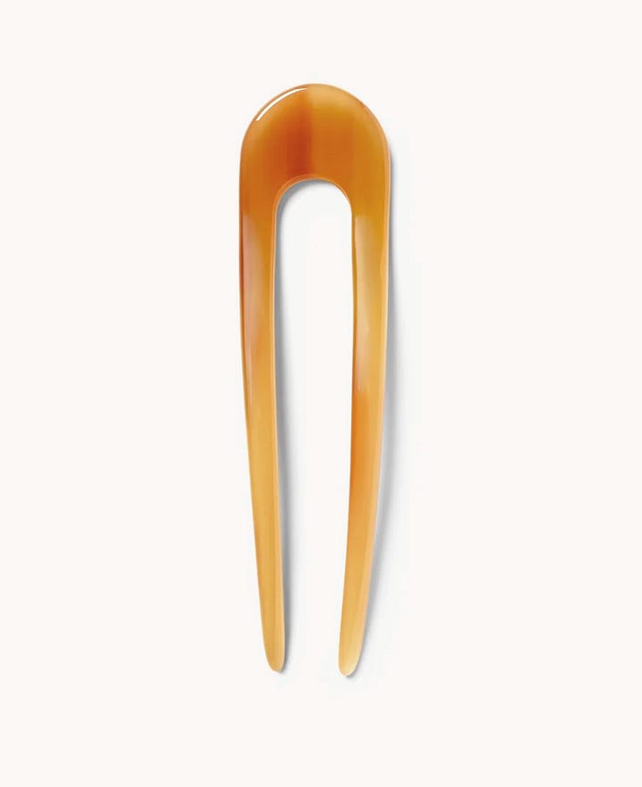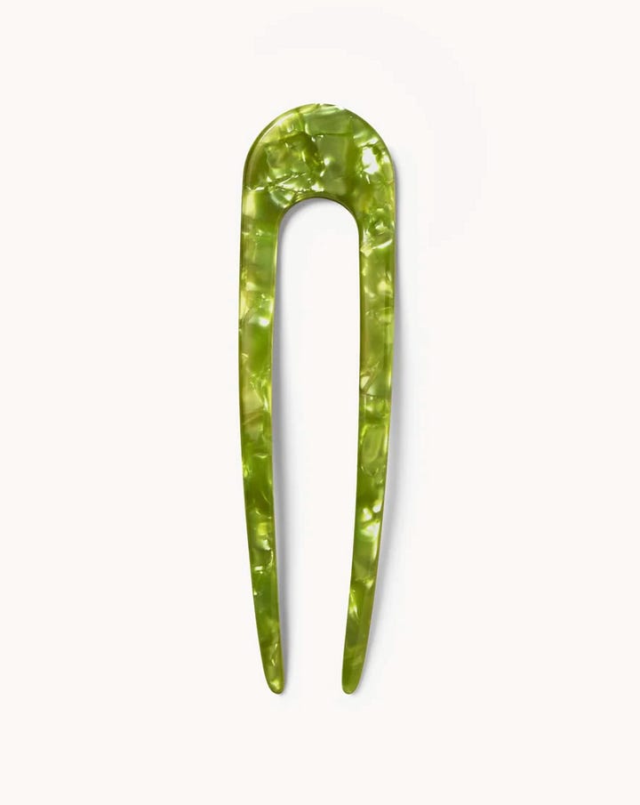 Try these French Hair Pins by Machete. My favorites are the Pistachio and the Cognac - and there are many fun colors and patterns to choose from! The pins are hand-sculpted in Fine Italian Acetate and made to hold your hair effectively with no creases. Simple to use and perfect for days to do not have time to f*ck around with your hair.