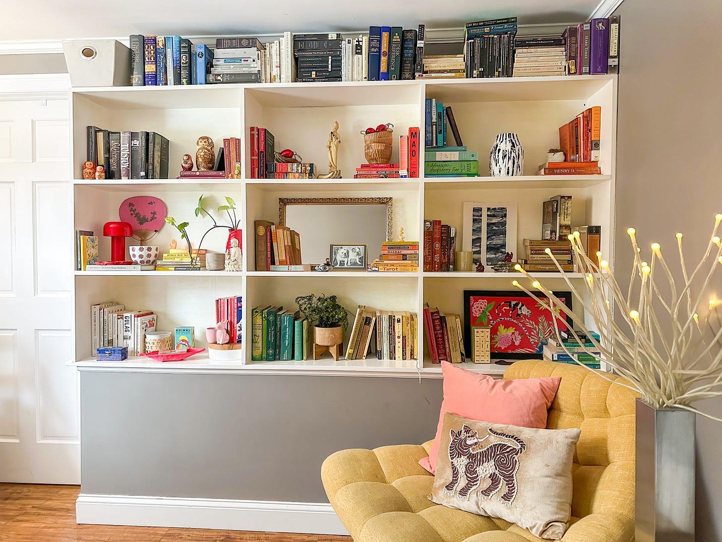 I started in my office, where the bulk of my books live. I have already partaken in a pretty brutal edit of my book collection last summer, so I was unsure how much more I could part with. Honestly, it was not many, maybe 10-15 books. However, it allowed me to reconfigure my shelving and lessen how heavy the built-in wall made the room feel with its rows and stacks. It opened up options to make the space more visually soothing by creating more negative space for the eye to rest.